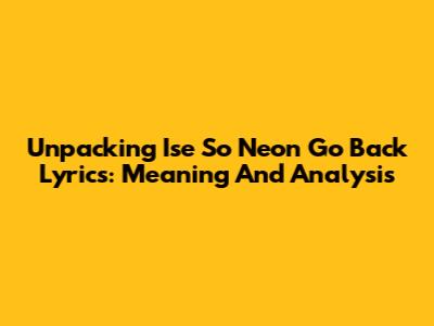 Unpacking 'Ise So Neon Go Back' Lyrics: Meaning And Analysis