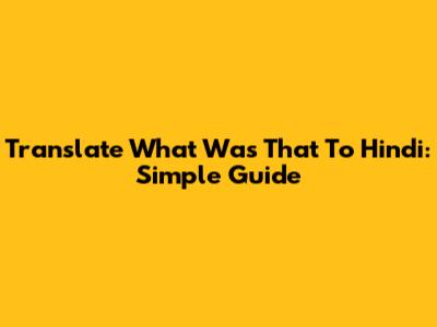 Translate 'What Was That' To Hindi: Simple Guide