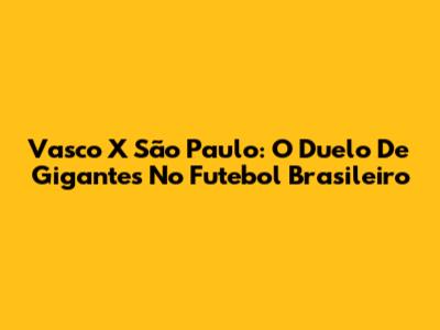 Vasco X São Paulo: O Duelo De Gigantes No Futebol Brasileiro
