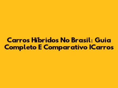 Carros Híbridos No Brasil: Guia Completo E Comparativo ICarros