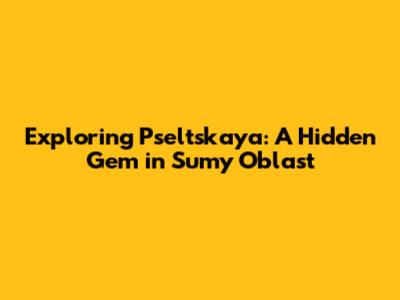 Hey guys! Today, we're diving into the heart of Ukraine to uncover the beauty and charm of a place you might not have heard of: Pseltskaya in Sumy Oblast. Get ready to explore this hidden gem with me, as we delve into its history, culture, and everything that makes it special. Trust me; by the end of this article, you'll be itching to add Pseltskaya to your travel bucket list!