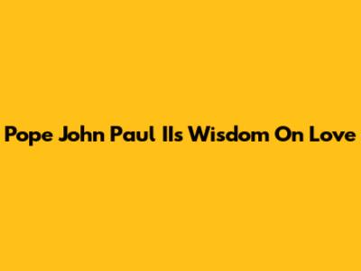 Pope John Paul II's Wisdom On Love