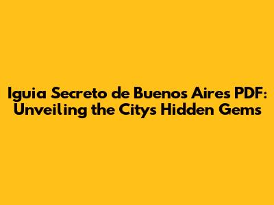 Are you ready to explore Buenos Aires beyond the typical tourist hotspots? Look no further! The "Iguia Secreto de Buenos Aires PDF" is your key to unlocking the city's best-kept secrets. In this article, we'll dive deep into what makes this guide so special, how it can transform your travel experience, and where you can find it. So, let's get started and uncover the magic of Buenos Aires, one secret at a time. Forget those crowded tourist traps, guys. We’re about to embark on a journey that will take you off the beaten path and introduce you to the real Buenos Aires. Think hidden cafes, quirky art galleries, clandestine tango clubs, and local markets buzzing with authentic Argentinian culture. The "Iguia Secreto de Buenos Aires PDF" isn't just a guide; it's your passport to an unforgettable adventure. This guide is meticulously crafted, offering insights into the city's lesser-known neighborhoods, historical anecdotes, and cultural gems that often go unnoticed by the average traveler. It's like having a local friend whisper insider tips in your ear, leading you to experiences you wouldn't find in any mainstream travel book. So, if you're craving an authentic and immersive experience, keep reading! We're about to reveal how this PDF can transform your Buenos Aires trip from ordinary to extraordinary. Imagine strolling through cobblestone streets, stumbling upon a hidden courtyard filled with vibrant street art, or savoring the most delicious empanadas you've ever tasted in a hole-in-the-wall eatery recommended by a local. That's the power of the "Iguia Secreto de Buenos Aires PDF". It empowers you to explore Buenos Aires like a true porteño (a local resident). And hey, who doesn't want to feel like a local when traveling? Seriously, ditch the predictable itineraries and embrace the thrill of discovering the city's hidden treasures. Get ready to impress your friends with your insider knowledge and create memories that will last a lifetime.
