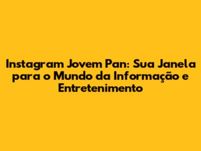 Instagram Jovem Pan se consolidou como uma das principais plataformas de notícias e entretenimento no Brasil. Se você busca estar por dentro dos acontecimentos mais relevantes do país e do mundo, além de desfrutar de conteúdo diversificado e dinâmico, o perfil da Jovem Pan no Instagram é o lugar certo! Com uma abordagem ágil e informativa, a rede social da Jovem Pan oferece uma experiência completa, combinando jornalismo de qualidade com a linguagem visual e interativa que a plataforma proporciona. Vamos mergulhar no universo do Instagram Jovem Pan, explorando seus recursos, conteúdos e como você pode aproveitar ao máximo essa ferramenta para se manter atualizado e entretido.