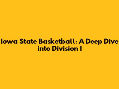 Hey guys! Let's dive deep into the exciting world of Iowa State Division I basketball. We're going to explore everything that makes this program tick, from its storied history to its current stars and future prospects. Whether you're a die-hard Cyclones fan or just a college basketball enthusiast, there's something here for everyone.