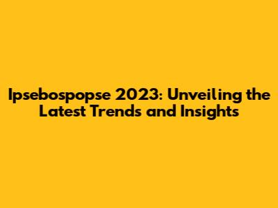 Hey guys! Let's dive into the fascinating world of Ipsebospopse 2023. This year promises a lot of exciting developments, and we're here to break it all down for you. Whether you're a seasoned pro or just curious about what's happening, this guide will give you the lowdown on the key highlights, trends, and things you absolutely shouldn't miss. So, buckle up, and let's get started!