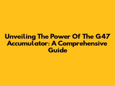 Unveiling The Power Of The G47 Accumulator: A Comprehensive Guide