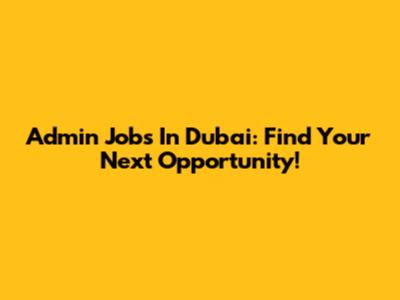 Admin Jobs In Dubai: Find Your Next Opportunity!