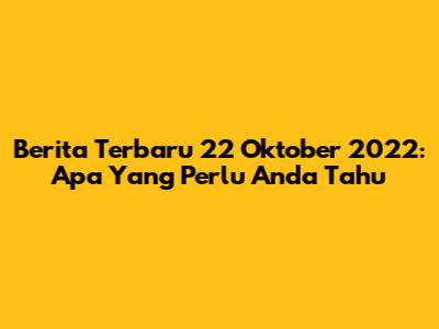 Berita Terbaru 22 Oktober 2022: Apa Yang Perlu Anda Tahu