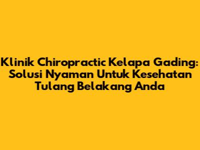 Klinik Chiropractic Kelapa Gading: Solusi Nyaman Untuk Kesehatan Tulang Belakang Anda