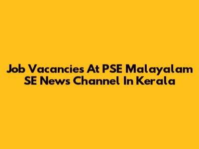 Job Vacancies At PSE Malayalam SE News Channel In Kerala