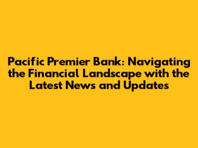 Hey everyone! Let's dive into the world of Pacific Premier Bank and get you all caught up on the latest happenings. We're going to explore their recent news, financial performance, and any significant changes that might impact their customers and the broader financial landscape. Ready to get started?