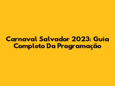 Carnaval Salvador 2023: Guia Completo Da Programação