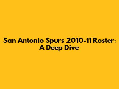 Let's break down some of the key players on the San Antonio Spurs 2010-11 roster and analyze their specific contributions: