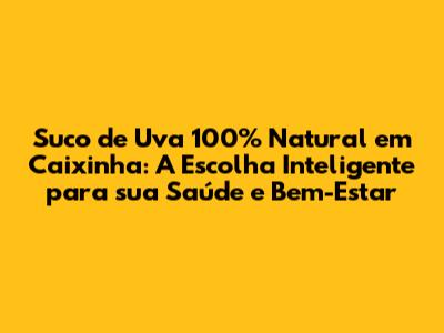 No mercado de bebidas, a variedade é enorme, mas nem todas as opções são igualmente saudáveis. O suco de uva 100% natural em caixinha se destaca por ser uma escolha inteligente para quem busca uma bebida saborosa e repleta de benefícios. Mas, por que ele é tão especial? 🤔