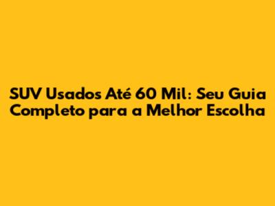 Comprar um SUV usado por até 60 mil exige atenção e pesquisa. Para garantir uma compra segura e satisfatória, siga estas dicas essenciais.