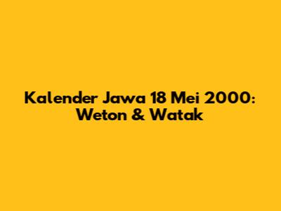 Kalender Jawa 18 Mei 2000: Weton & Watak